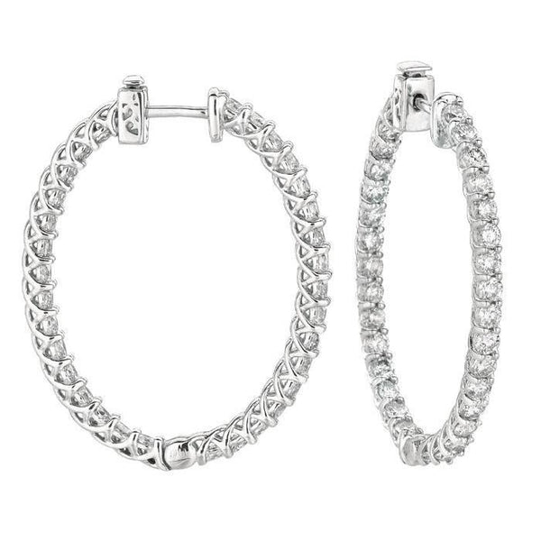 4.52 Carat Oval Shape 7 Pointer Hoop Natural Earth Mined Diamond Earring White Gold 14K