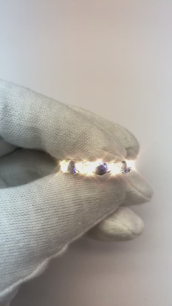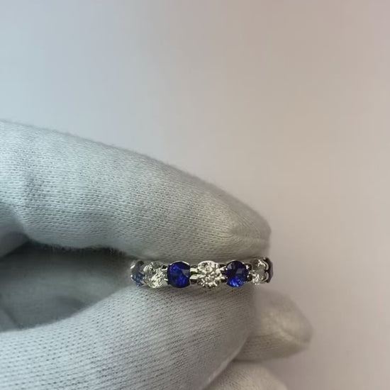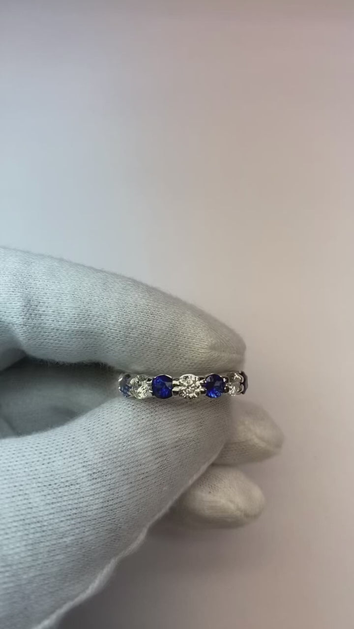 Stone Details : There are 8 round Blue Sapphires approx. 0.30 carats (Approx. Diameter 4 mm) each and 8 round diamonds approx. 0.30 carats (Approx. Diameter 4 mm) each. Natural earth mined stones.