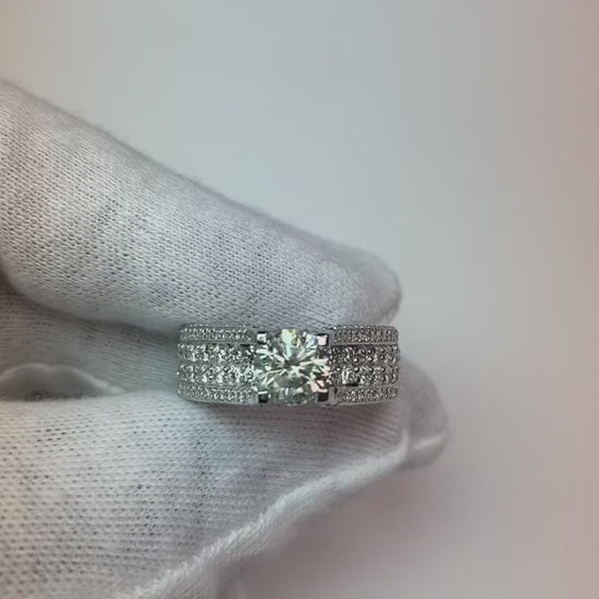 Stone Details : There is one round diamond in the center approx. 1.25 carats (Approx. Dia. 6.7 mm) and approx. 2.75 carats of smaller diamonds on the side. Natural earth mined diamonds.