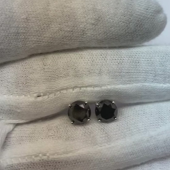 4 Carats Stud Earrings Round Black Natural Earth Mined Diamonds Nice White Gold Finish