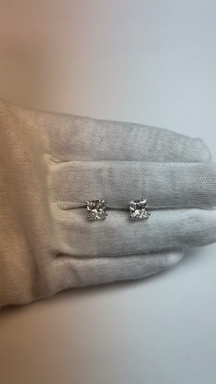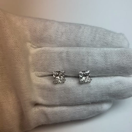 4 Ct Big Princess Cut Solitaire Genuine Natural Earth Mined Diamond Stud Earring 14K White Gold