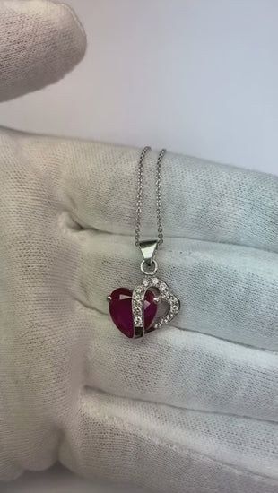 5.60 Ct Heart Cut Ruby With Round Natural Earth Mined Diamonds Pendant Necklace WG 14K