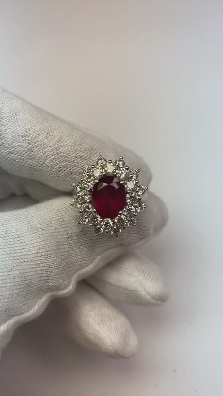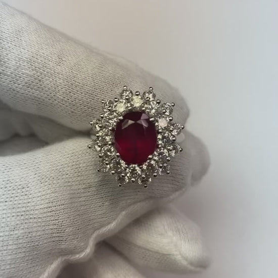 6.50 Ct Red Ruby With Natural Earth Mined Diamonds Ring White Gold