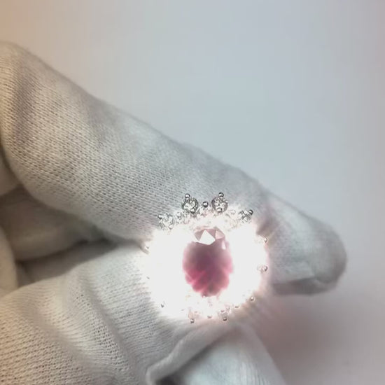 Stone Specifications: There is one ruby in the center of approx. 4.25 carat & approx. 2.25 carats of smaller round diamonds on the side. Natural earth mined stones.