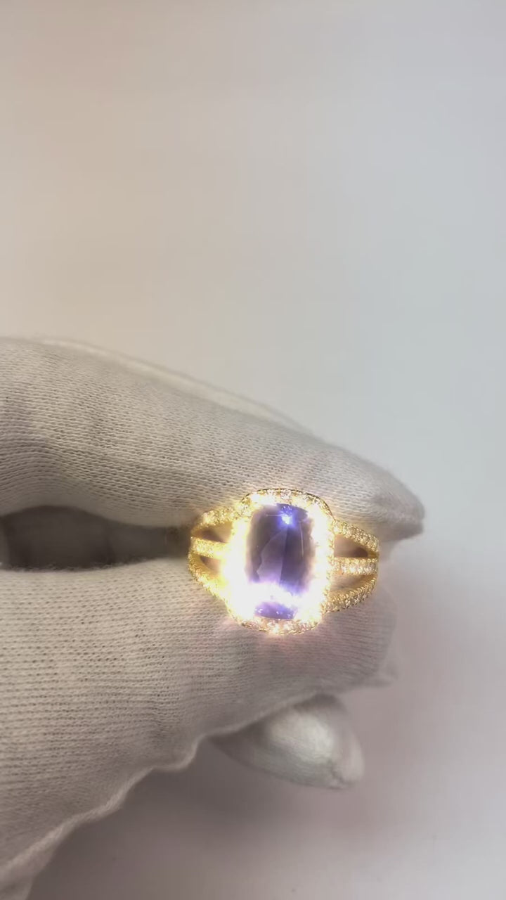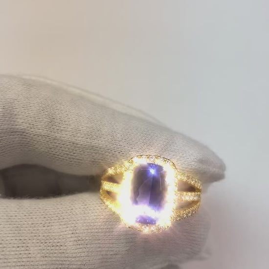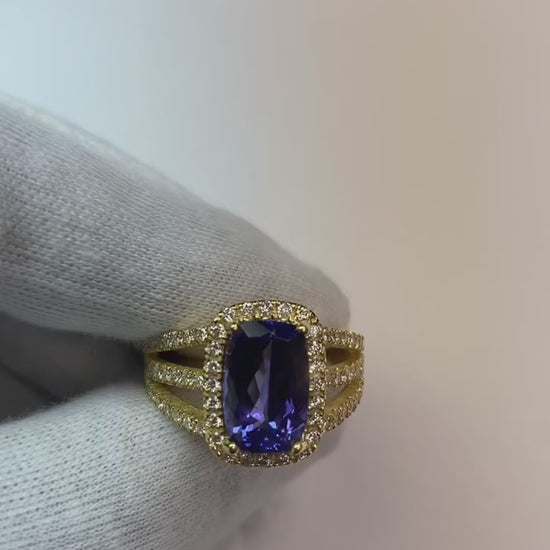 6.55 Carats Fancy Ring Cushion AAA Tanzanite And Natural Earth Mined Diamonds Jewelry