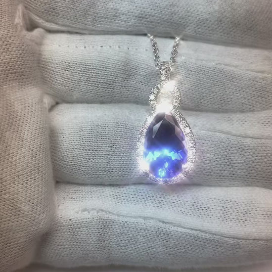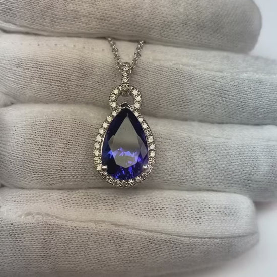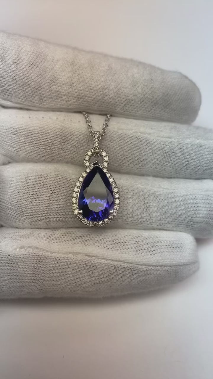 6.65 Ct. Pendant Necklace 14K Pear Tanzanite With Round Natural Earth Mined Diamonds