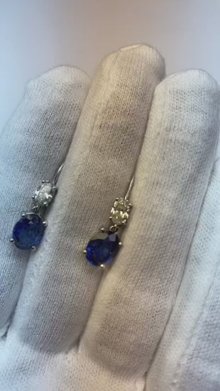 6 Carat Oval Ceylon Sapphire Natural Earth Mined Diamonds Dangle Earring Two Tone Gold