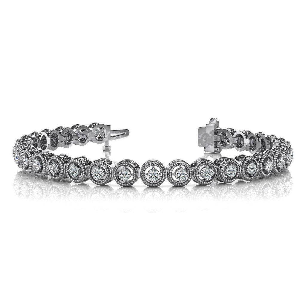 6 Carats Natural Diamond Circle Filigree Link Bracelet White Gold New