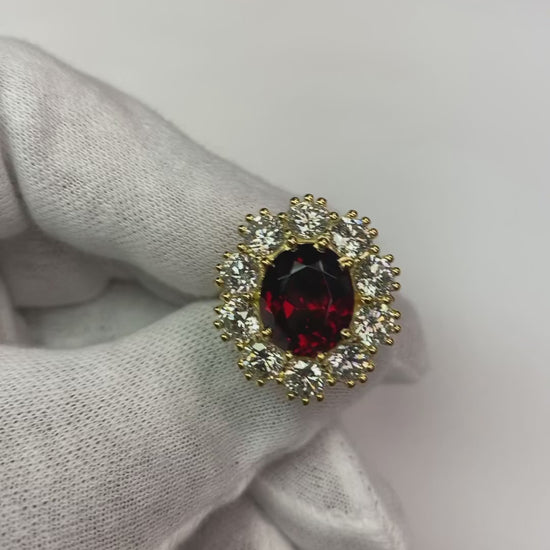 7.25 Ct Prong Set Oval Cut Garnet And Natural Earth Mined Diamonds Engagement Ring