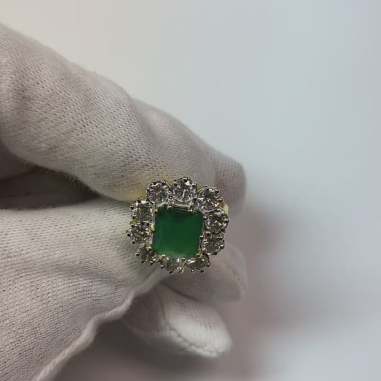 7 Carats Green Emerald Natural Earth Mined Diamond Wedding Ring Gold 14K