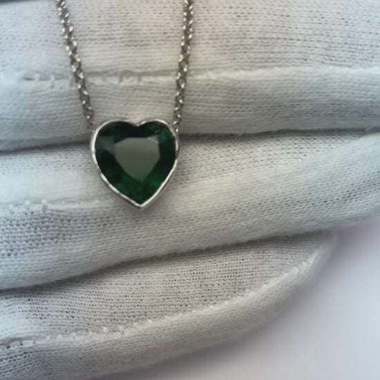 7 Ct Big Heart Shape Green Emerald Pendant Necklace