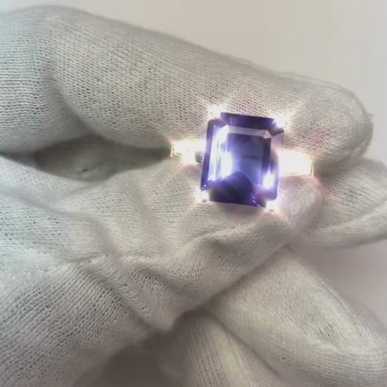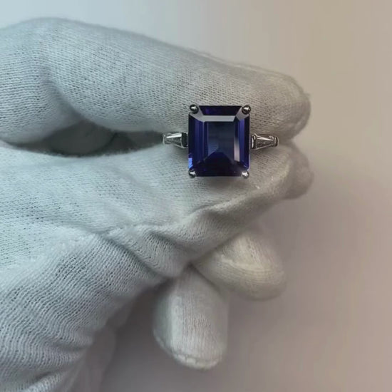 8.30 Carats Emerald Cut Tanzanite & Baguettes Engagement Ring