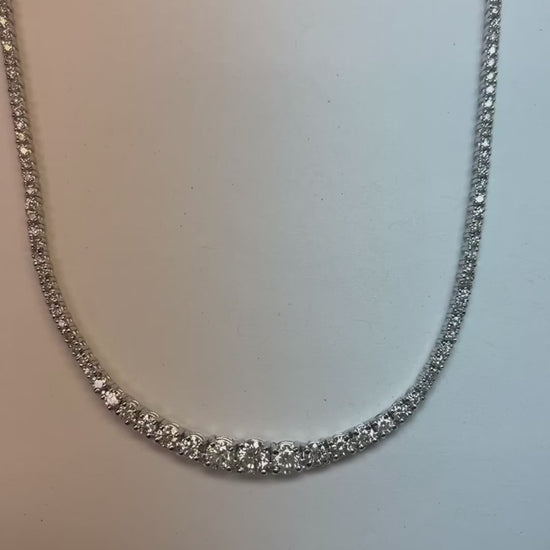 9 Carats Prong Set Natural Diamond Diamonds Tennis Necklace White Gold 14K
