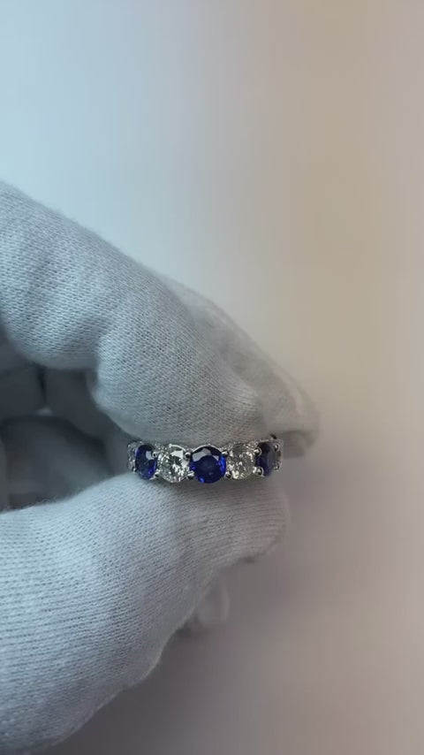 Alternating Blue Sapphire & White Diamond Eternity Wedding Band