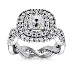 Antique Style Double Halo Old Miner Natural Earth Mined Diamond Ring 4.50 Carats Milgrain