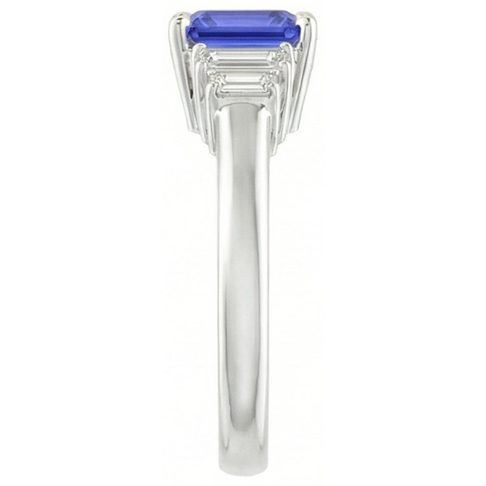 Baguette Natural Earth Mined Diamond Ring Ceylon Sapphire Jewelry 2.50 Carats 4 Prong Set