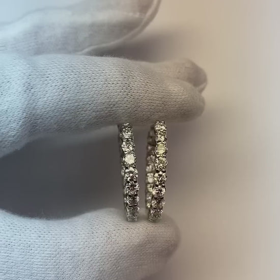 Beautiful Round Cut Natural Earth Mined Diamond Hoop Earring Solid White Gold 14K 3 Ct.