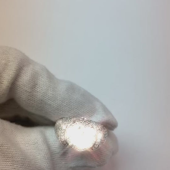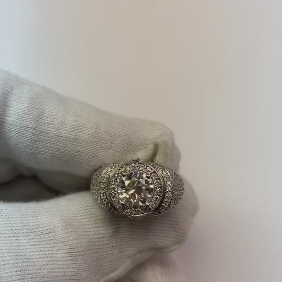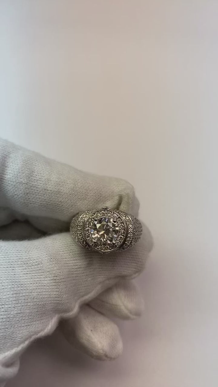 Big Round Diamond Men's Ring With Accents 5.50 Carats White Gold 10K