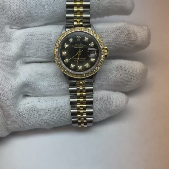 Black Diamond Dial Ss & Gold Bracelet Datejust Ladies Rolex Watch