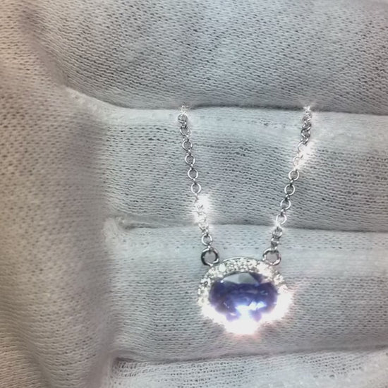 Ceylon Blue Sapphire Pendant Oval Cut Round Natural Earth Mined Diamond Gold 14K 2.5 Ct