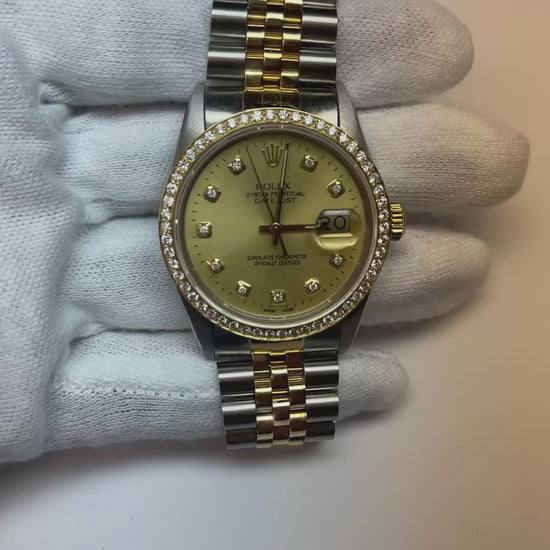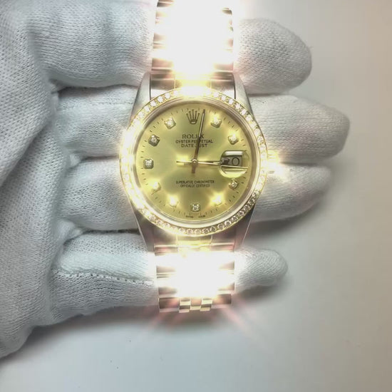 Champagne Diamond Dial Bezel Rolex Datejust Watch Gold & Steel QUICK SET