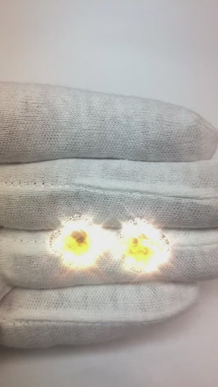 Stone Details : There is one cushion yellow sapphire approx. 3 carats (Approx. Size 7.5 x 7.5 mm) in each earring and approx. 1.75 carats total of diamonds in the earring pair.