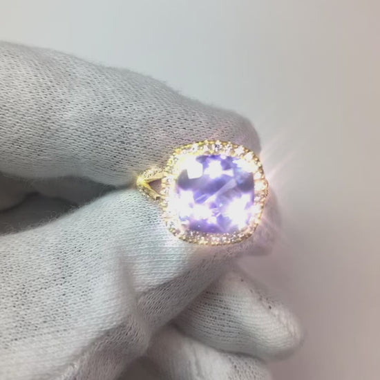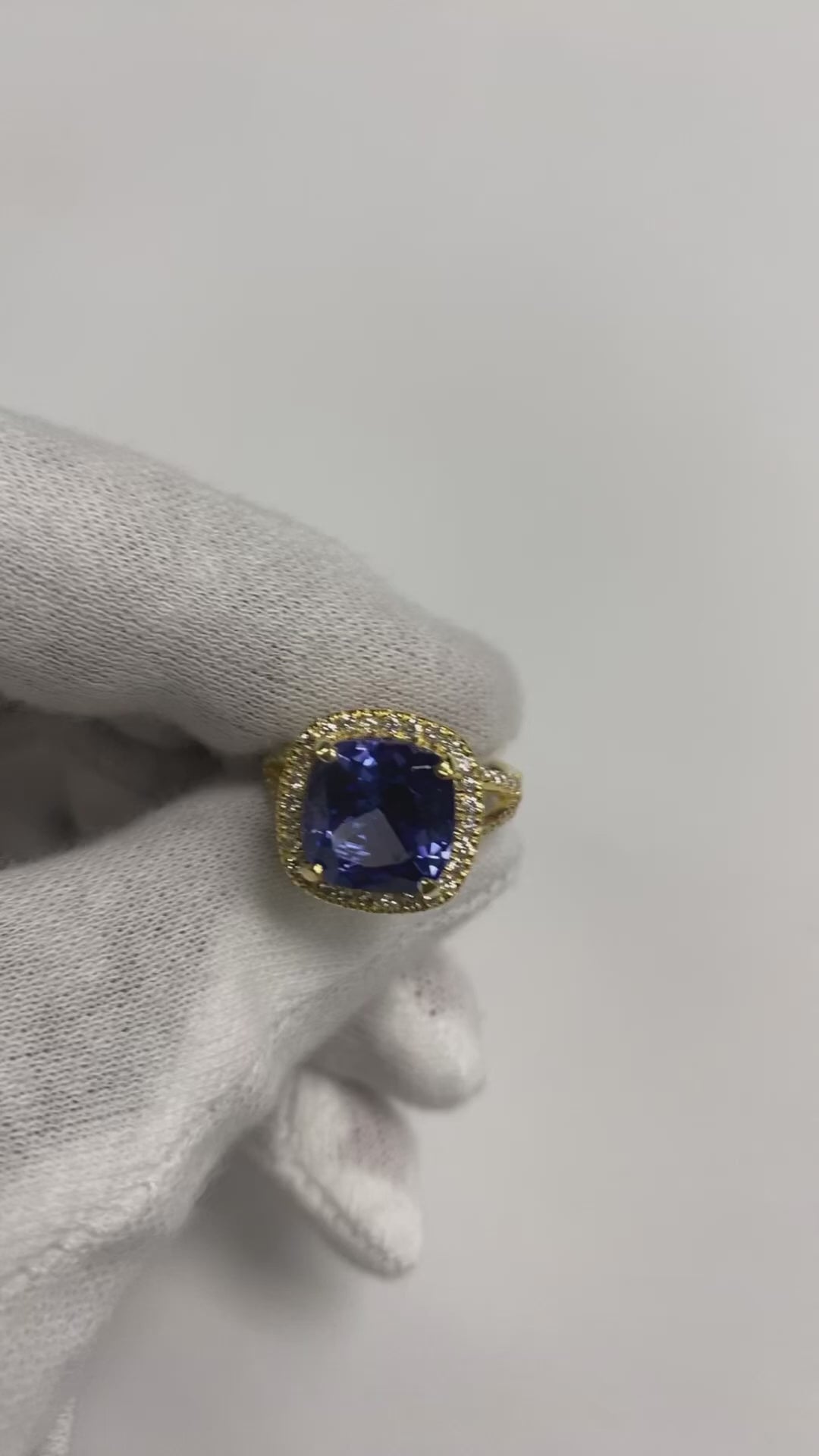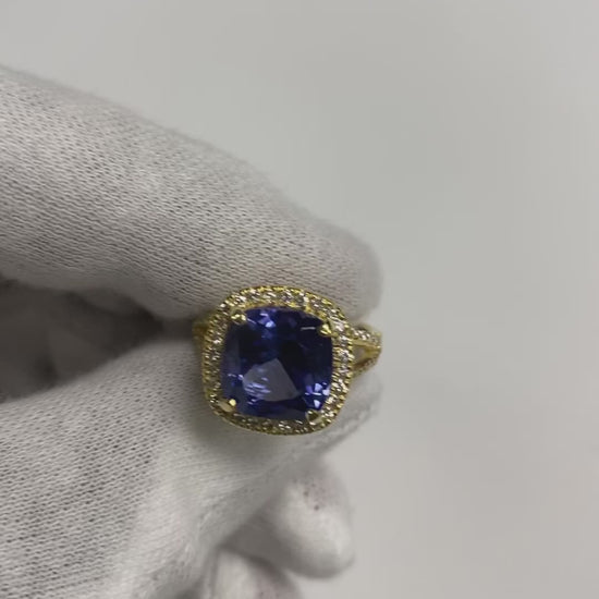 Cushion Tanzanite Halo Gemstone Ring 6.50 Carats Split Shank