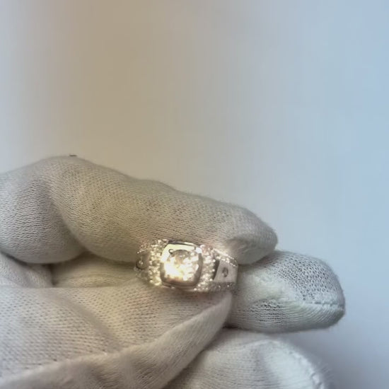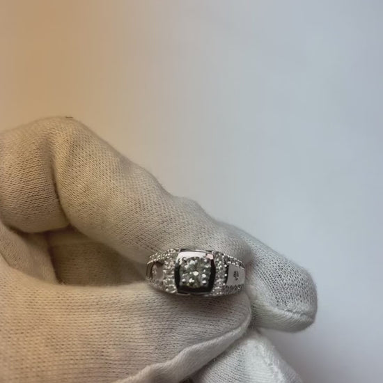 Stone Details : There is one center round diamond approx. 1 carat (Approx. Diameter 6.3 mm) and smaller round diamonds on the sides approx. 1.50 carats. Lab Grown Diamonds.