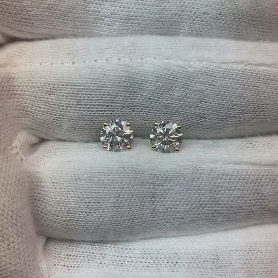 Stone Details : There is one round cut diamond approx. 1 carat (Approx. Diameter 6.3 mm) in each earring. Natural earth mined diamonds.