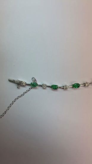 Stone Details : There are 11 Green Emeralds approx. 0.50 carats average size and 11 Round diamonds approx 0.05 carats average size. Natural earth mined stones.
