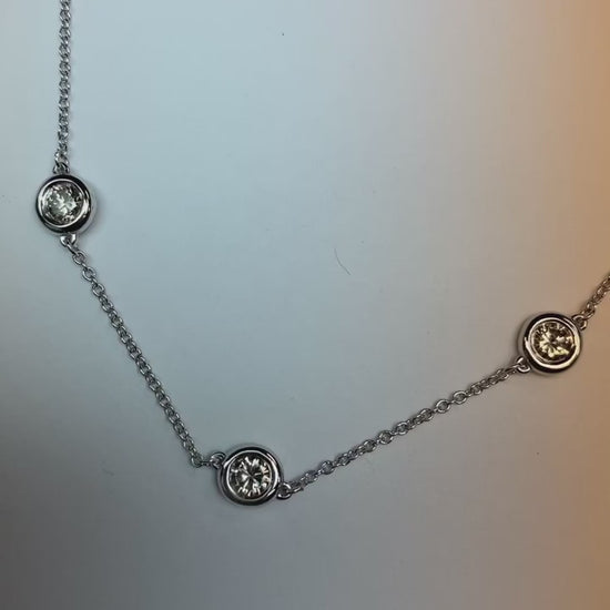 Natural Diamond Diamond Half Way Around Chain Necklace 1.50 Carats 14K White Gold
