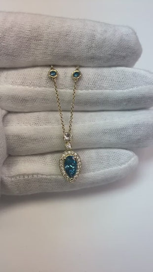 Stone Details : There is one pear cut sapphire approx. 1 carat (Approx. Size 7.5 x 6 mm) and approx. 1.50 carats of smaller stones in the pendant. Natural earth mined stones.