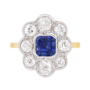 Natural Earth Mined Diamond Halo Sapphire Ring Bezel Set Asscher Cut Flower Style 4 Carats