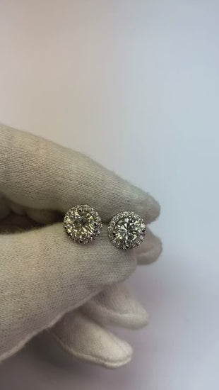 Natural Earth Mined Diamond Halo Studs 4 Carats Yellow Gold 14K