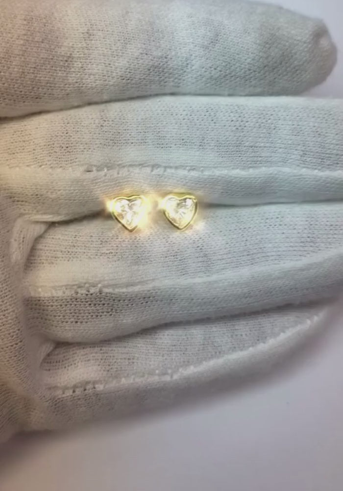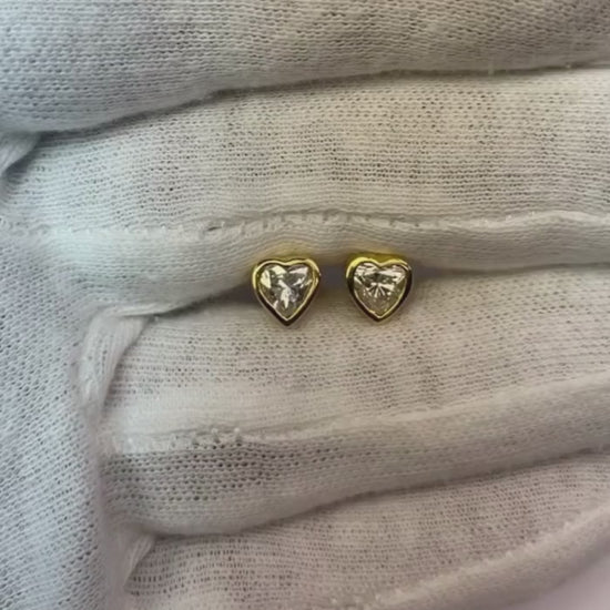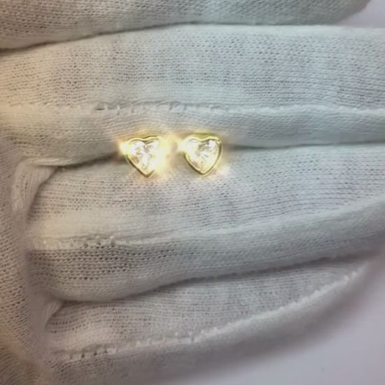 Earth Mined Diamond Heart Stud Earrings Bezel Set Yellow Gold