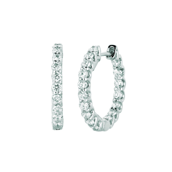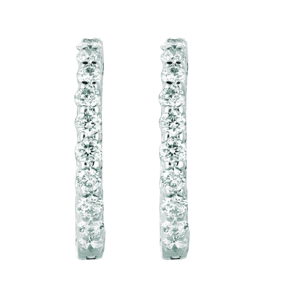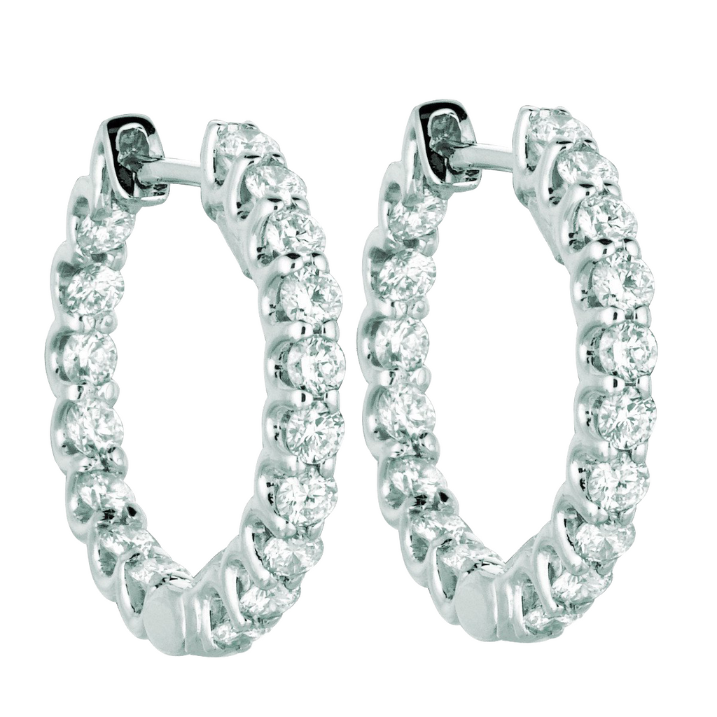 Natural Earth Mined Diamond Hoop Earrings 1.36 Carats 14K White