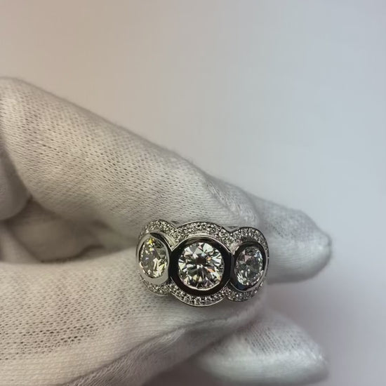 Genuine Natural Earth Mined Diamond Old Miner Anniversary Ring 3 Carats Bezel Set Ladies Gold Jewelry