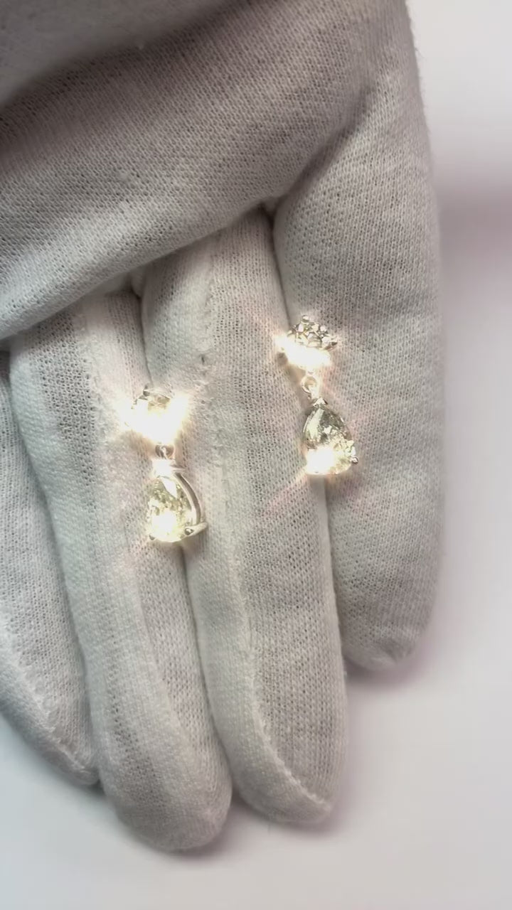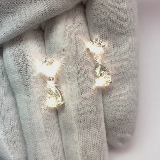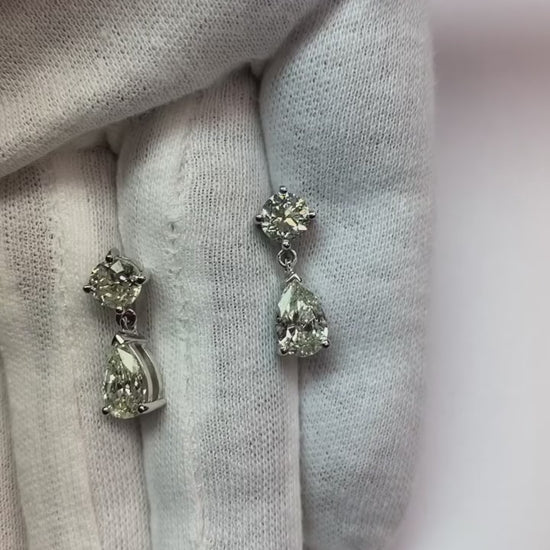 Stone Details : There is one pear old miner diamond approx. 1.50 carats (Approx. Size 7 x 6 mm) and approx. 1 carat of smaller diamonds in each earring. Natural earth mined diamonds.