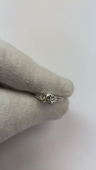 Natural Earth Mined Diamond Solitaire Engagement Ring 1 Carat Filigree White Gold 14K