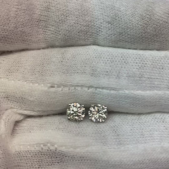 Stone Details : There is one round cut diamond approx. 0.75 carats (Approx. Diameter 5.6 mm) in each earring. Natural earth mined diamonds.