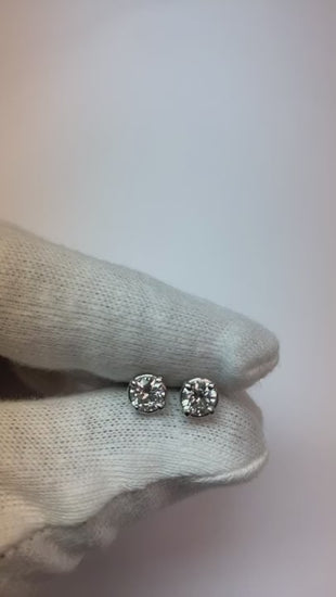 Stone Details : There is one round cut diamond approx. 0.60 carats (Approx. Diameter 5.2 mm) in each earring. Natural earth mined diamonds.