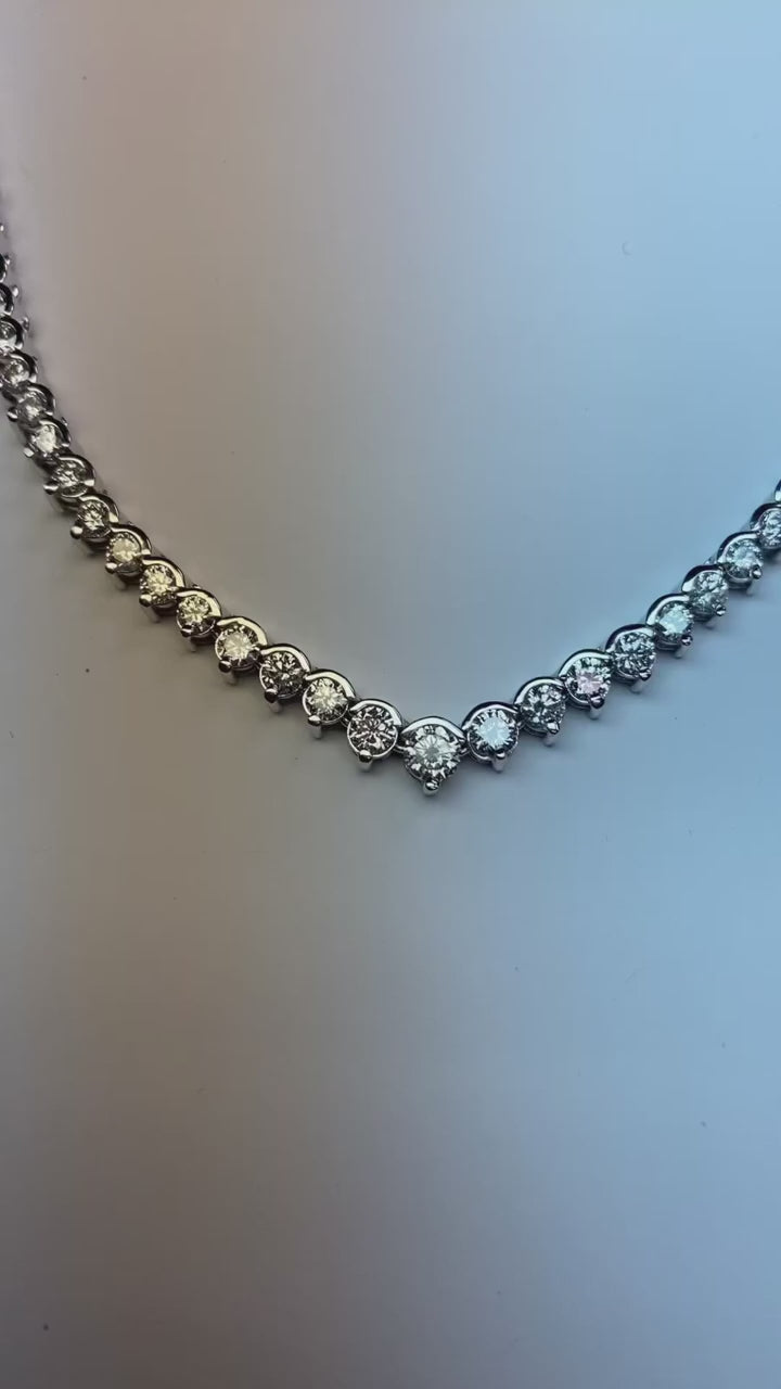 Stone Details : There are 109 round diamonds total approx. 12 carats in the necklace. Natural earth mined diamonds.