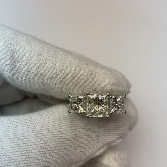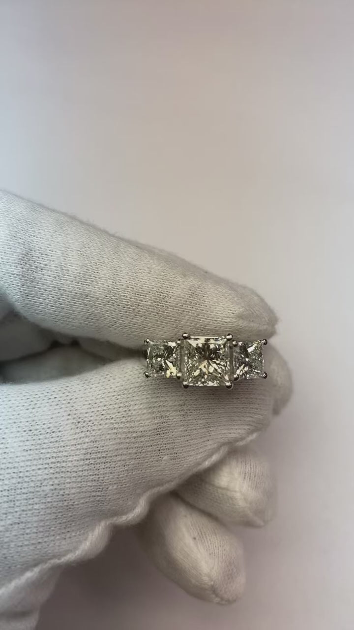 Natural Earth Mined Diamond Three Stone Ring 4.01 Carat Engagement Anniversary Jewelry