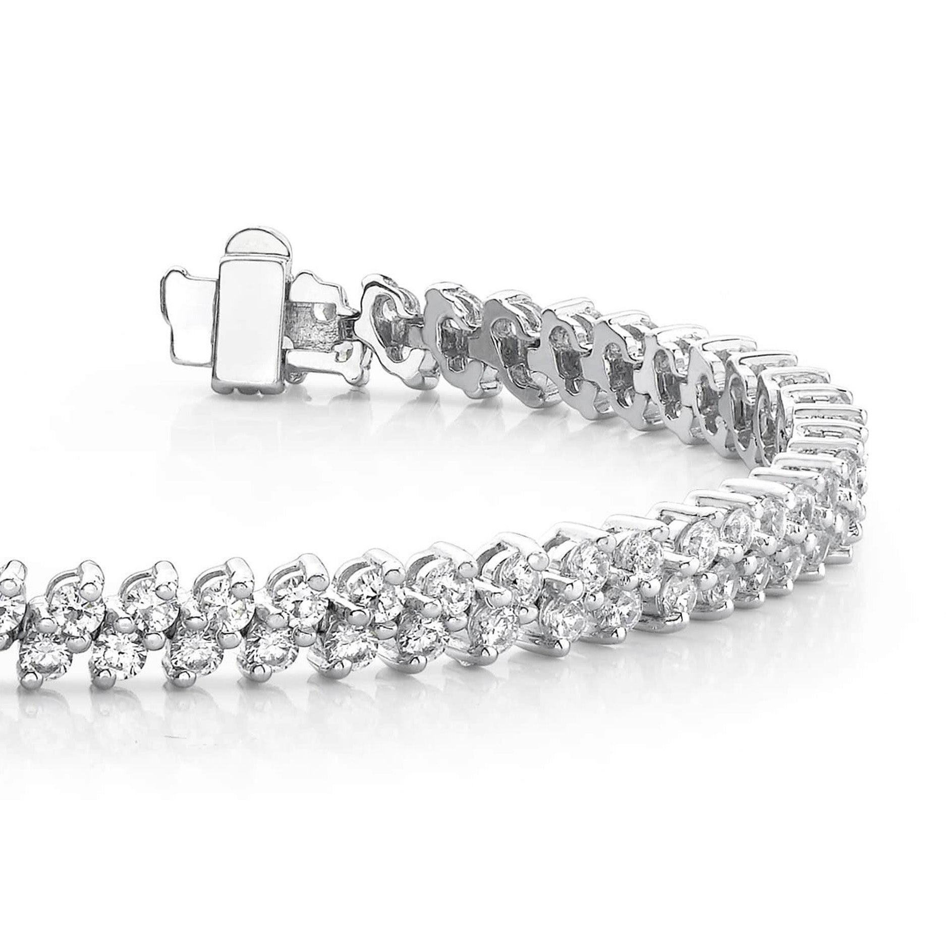 Double Row Round Cut Real Natural Earth Mined Diamond Tennis Bracelet 5 Ct. WG 14K