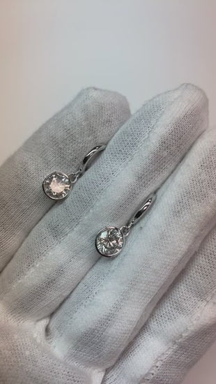 Drop Down Bezel Earrings Round Natural Earth Mined Diamond Pair 0.50 Carats White Gold 14K