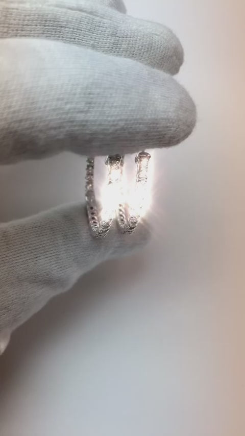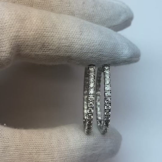 F Vvs1 Round Cut 4.80 Carats Natural Earth Mined Diamonds Hoop Earrings White Gold 14K