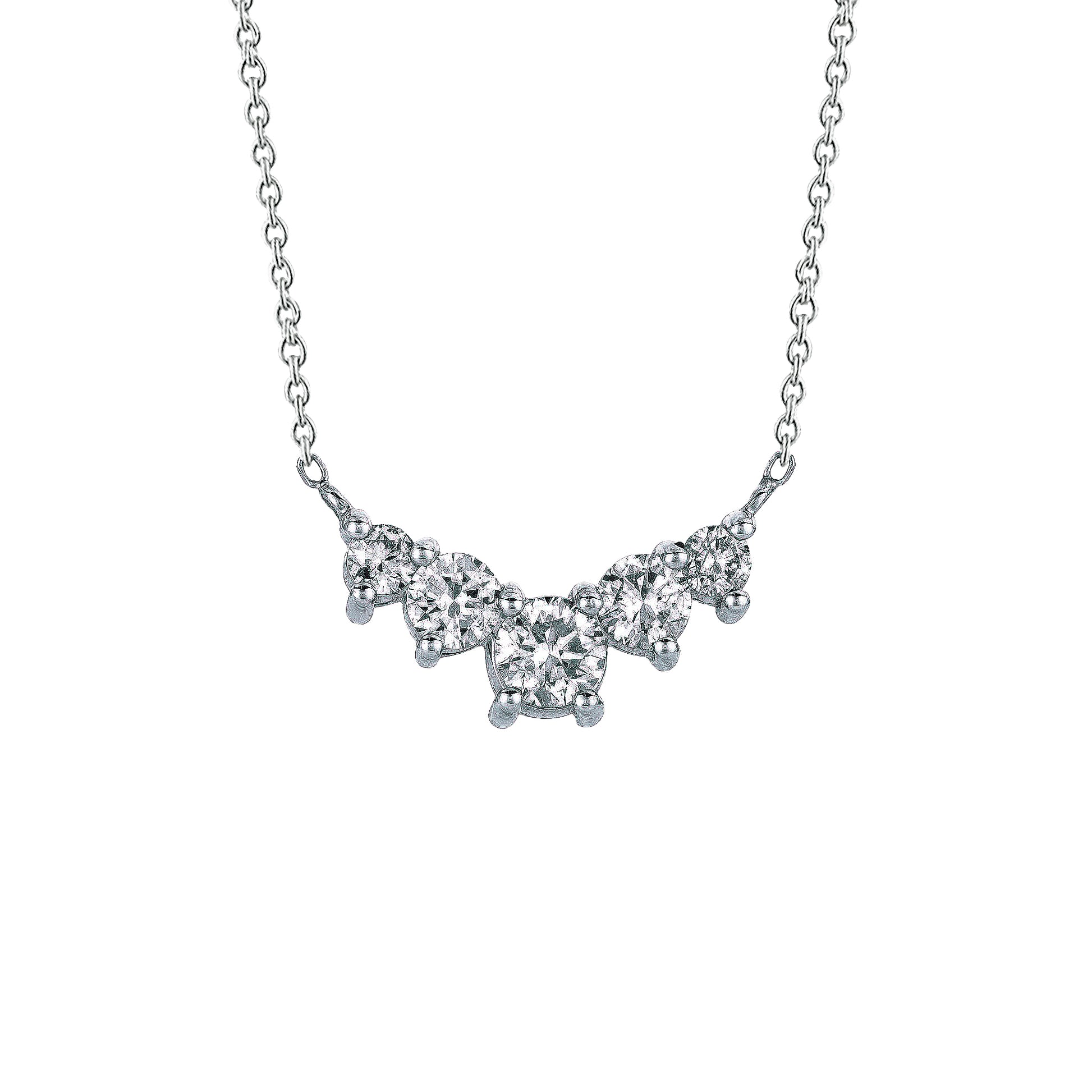 Five Stone Natural Earth Mined Diamond Necklace Pendant 1.55 Carats 14K White Gold