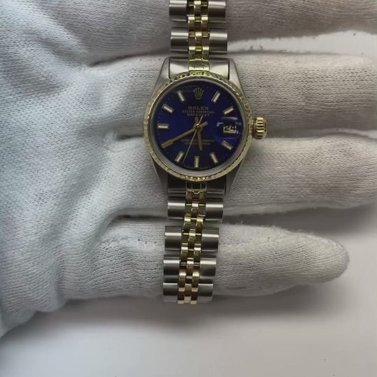Blue Stick Dial Watch Rolex Ss & Gold Jubilee Brace Fluted Bezel