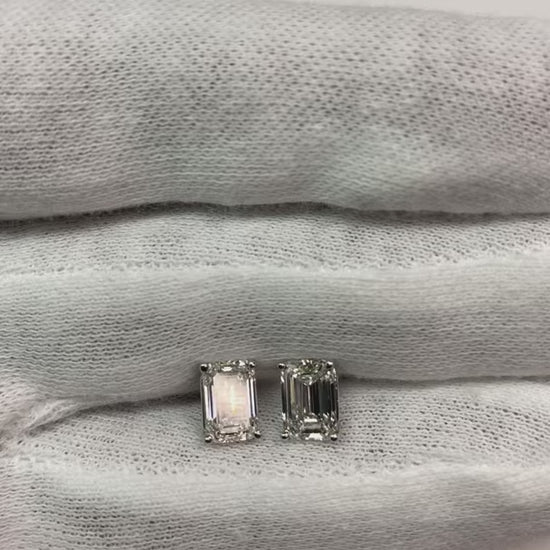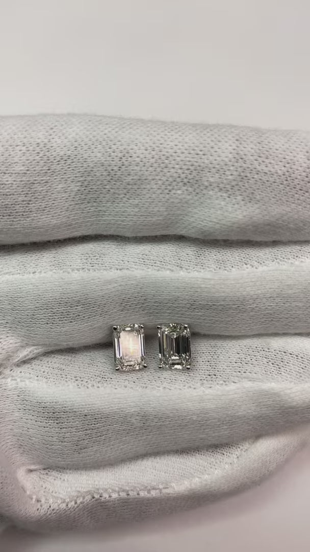 CERTIFIED Emerald 3 Carats Lab Grown Diamond Women Stud Earring White Gold 14K Jewelry