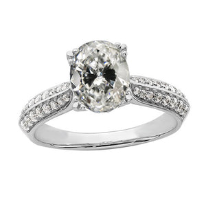 Gold Engagement Ring Oval Old European Natural Earth Mined Diamond 5 Carats Pave Set